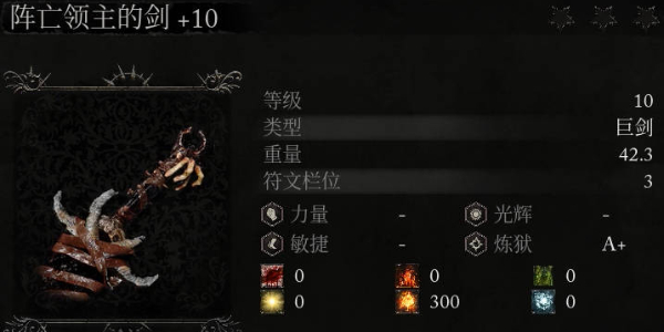 4、我们再次找到楼梯向上爬就可以获取到阵亡领主的剑,需求炼狱30。