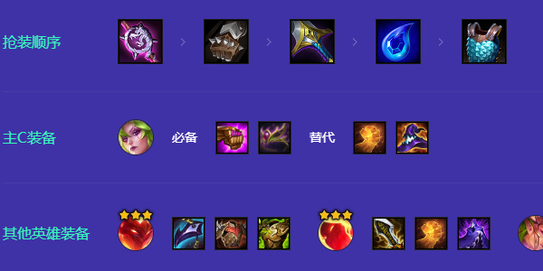 卡特琳娜:必备装备珠光护手、花仙女王的冠冕,替代装备为正义之手、班克斯的魔法帽