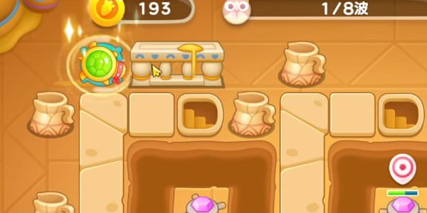 2.在清理掉第一个障碍物的时候放置第二个五角星并且进行升级,标记右上角的障碍物, 随后在怪物快到终点的时候放弃标记障碍物,让五角星清理掉第一波的怪物,并且有金币以后给下方的五角星进行升级,在怪物还没到之前可以让五角星先将附近的障碍物清理掉。