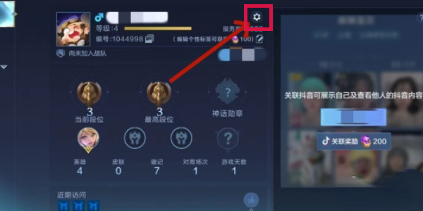 1.在游戏界面点开个人主页,随后点击右上角的设置。