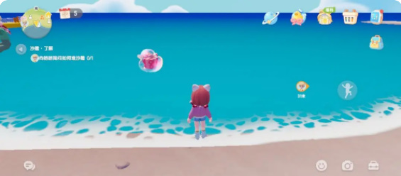 1、海边的大鸭子旁找到第一个泡泡(礼物)。