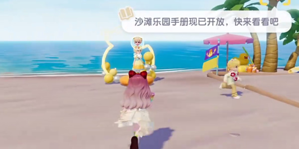 1、来到沙滩上找到npc皑皑,开启乐园手册,然后和皑皑对话了解沙雕爱好。