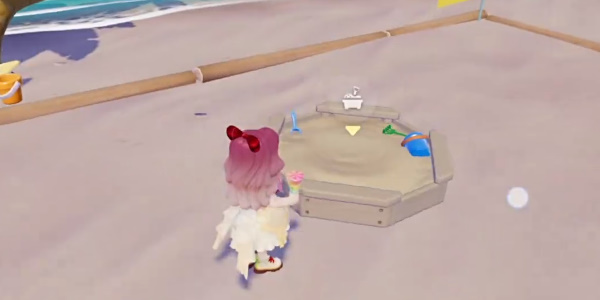 2、对话结束后来到旁边的沙雕堆砌区使用沙土堆砌一次沙雕。