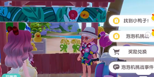 1、来到沙滩上找到艾瑞克,进行对话,选择泡泡机挑战。