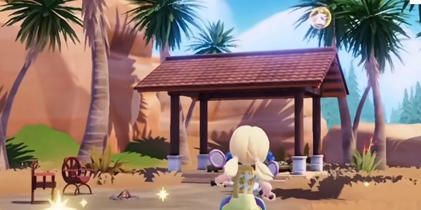 玩家打开地图来到图中所示的温泉山庄附近,在凉亭的屋顶上可以找到第一个泡泡服装。
