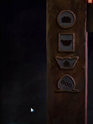 3、回到一开始的地方,点击栅栏,根据天上飘落的纸钱将栅栏上的图案改成如下图所示就可以获得铜渔网。