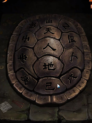 11、点击无字谶得到新的线索 ,回到天台上将铜子块放在龟壳缺失的位置获得三根香和一张纸条线索。