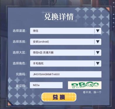 3、然后点击进入输入好自己的详细信息,因为每个兑换码同一个账号只能使用一次,重复使用则是无效的。