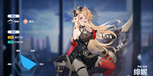 绯妮是一名远程攻击角色,她擅长在保持安全距离的同时对敌人造成巨大的伤害。她的攻击能力非常强大,可以在短时间内对单个敌人造成大量伤害,这使她成为了一名非常有效的单体输出角色。
