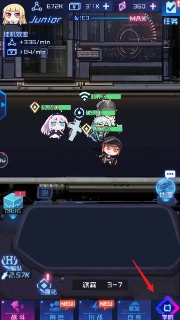 1、过完新手教程之后,点击游戏界面右下角的学院图标。