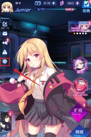 2、进入之后就可以看到角色左边的设置按钮,点击进入设置界面。