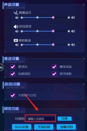 3、最后就可以在设置里面找到兑换码选项,输入上面的兑换码并点击后方的兑换按钮就可以领取奖励了。