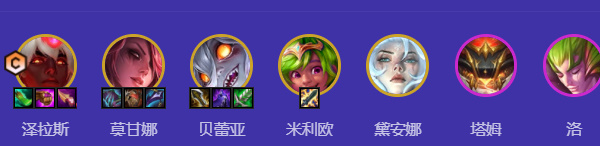 泽拉斯、莫甘娜、贝蕾亚、米利欧、黛安娜、塔姆、洛、妮蔻、赫卡里姆、阿狸。
