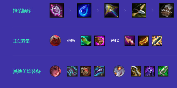 泽拉斯:必备为青龙刀、珠光护手,替代装备为纳什之牙、羊刀、电刃。