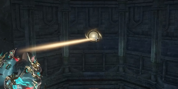 2.使用机甲的【流光】按键,对准上方的圆镜一小会儿直到冒出奖励。