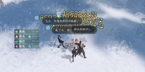 2.随后使用技能将想要捕杀【雪灵狐】的坏人打跑。