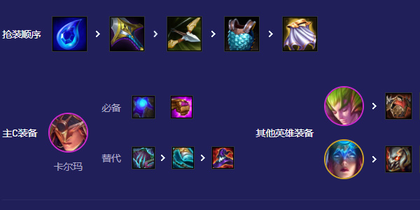卡尔玛必备蓝BUFF,作为30蓝条的英雄,这就是最优的装备,卡蜜儿所有战士装备都能接受,并且4费剑姬也可以替代卡蜜儿吃掉同样的装备。