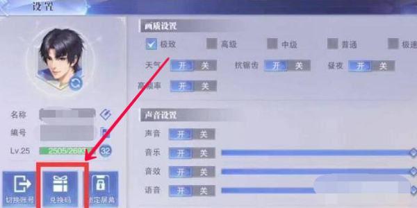 2、在个人选项界面我们找到左下角的兑换码选项,点击后就可以进入兑换界面。