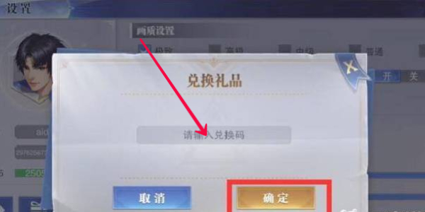 3、最后我们在兑换页面输入对应的兑换码,并点击确定按钮就可以领取兑换奖励了。