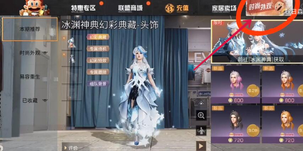 1、玩家首先进入游戏,打开商城后,点击右上角的时尚外观;