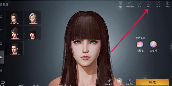 4、最好在捏脸界面,我们点击右上角的导入按钮,然后输入自己的捏脸码,并点击确认即可完成捏脸。