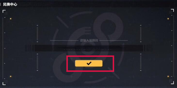 3.最后在【兑换中心】页面,输入对应的兑换码,注意不要留空格和记得区分大小写,确认无误以后点击下方黄色的打勾确认按钮,即可获取奖励。