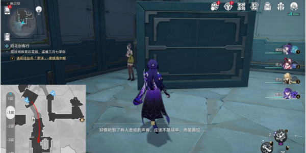 第三个逃犯位于幽囚狱-3层,需要从传送锚点出发通过换境画屏到达电梯附近,随后折返到阶梯机关处;将阶梯机关调整至向上后,通过阶梯前往上层,调查附近的箱子。