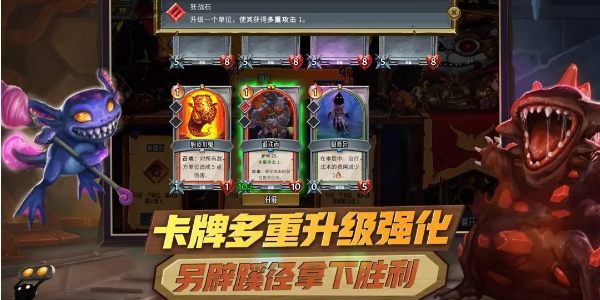 “断角王子”为勇者卡,升级路线为Ⅱ级“殴斗者”和Ⅰ级“暴怒”;烈火焚身”强化“减费”和“返回”,强化后可复制一张。
