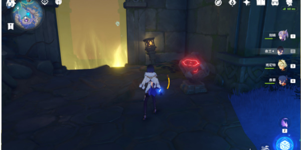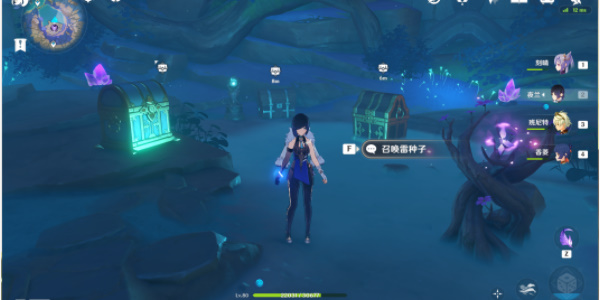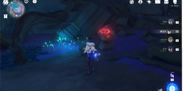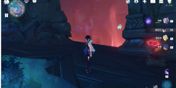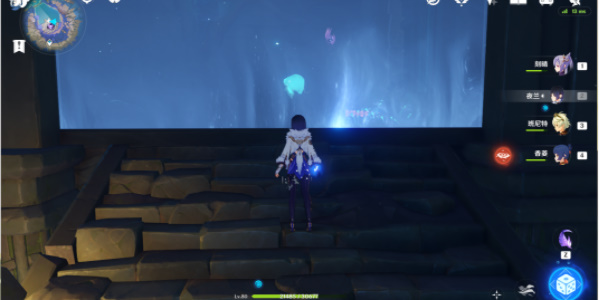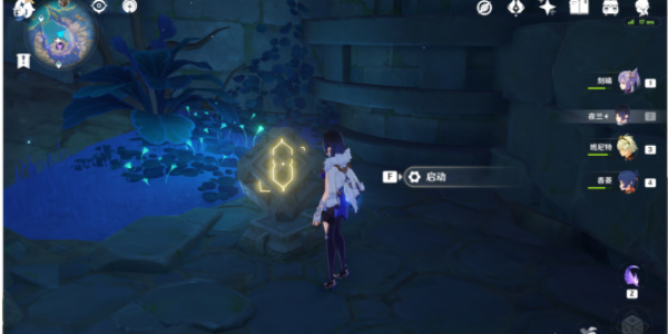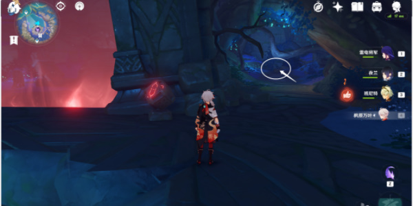 3、与水边的开关交互,观看动画后水位下降,往地图西方向飞到对面的雷樱枝条位置。
