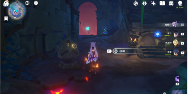 5、返回门口,引导地图的南方向的仙灵一进入红色的屏障门内,然后开启红开关1,将其切换为竖,就可以降下红色的屏障。