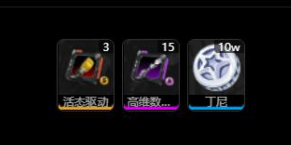 强化消耗素材:10W丁尼、15高维数据【追袭骸影】、3活态驱动