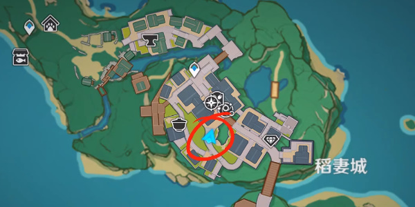 玩家打开地图传送到稻妻城的传送锚点,然后在稻妻城木漏茶室附近的小道上可以找到绮良良,玩家可以和绮良良进行对话。