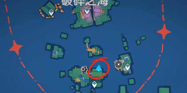 玩家打开地图传送到希穆兰卡破碎之海附近的锚点,来到下图所示的位置,可以找到正在悬崖旁和奥兹对话的菲谢尔。