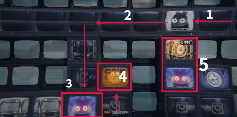 6.左侧走到拐角处往下走吃第三份金币,根据如图所示的路线走,碰到红色装置。
