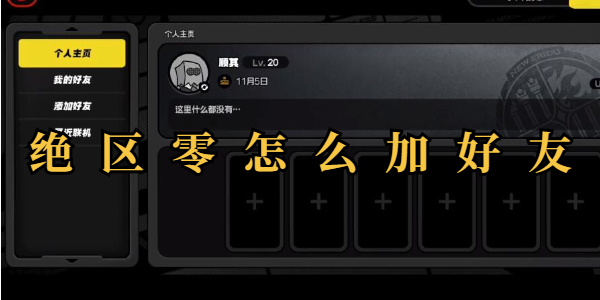 绝区零怎么加好友?很多玩家还不知道绝区零有着好友功能,在最近新上线的小活动中玩家可以和好友联机一起挑战,很多人不知道在哪加好友,小编下面就为大家带来绝区零详细的加好友方法介绍,还不知道怎么加好友的小伙伴可以来看看。