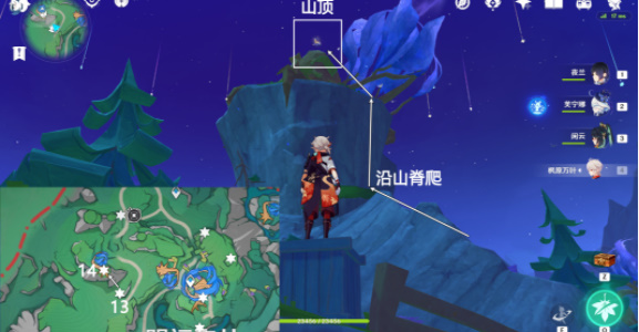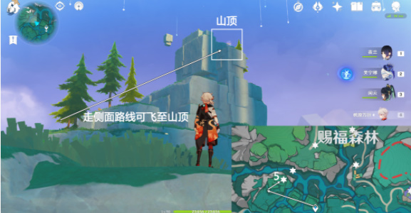 传送赐福森林西南方向锚点,往地图的西北方向走,前往山的侧面,接着往侧面路线可飞至山顶拾取。