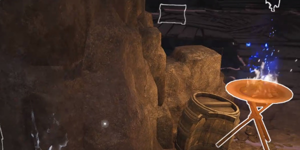 3.在平台上我们可以在火盆旁边找到第一个宝箱。