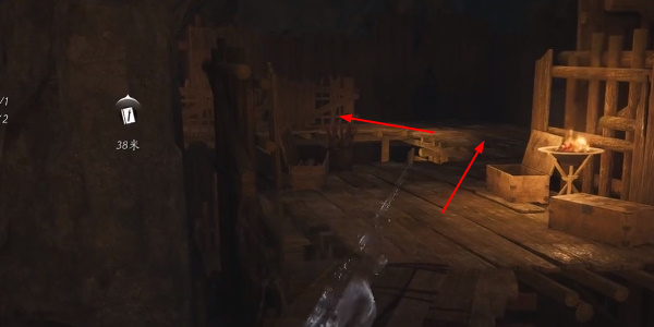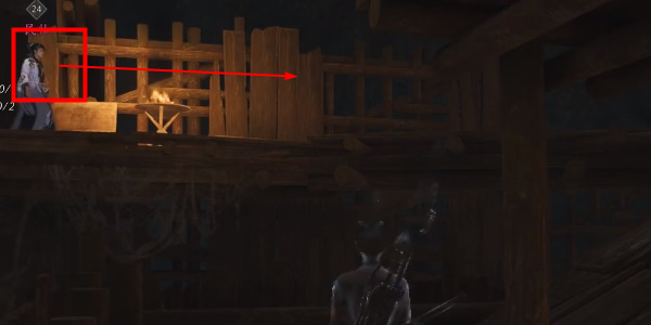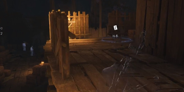 2.进入密窟玩家将眼前的npc干掉,然后沿着木架来到二楼。