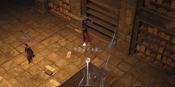 4.进入房间玩家可以跟在npc身后前进,如果被发现可以将其处理掉,然后在书架后方找到一个宝箱,将其开启。