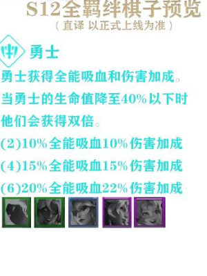 勇士获得全能吸血和伤害加成。当勇士的生命值降至40%以下时,他们会获得双倍。