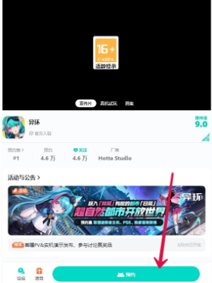 2.进入有效详情界面后我们点击下方的预约按钮即可开启游戏预约。