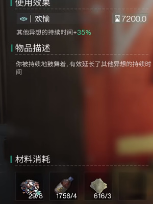 1.首次收容以后可解锁欢愉异想药剂配方,增加其他异想的持续时间,当异常能量大于30时,自动激活进入工作状态,并且生成鼓舞碎片。