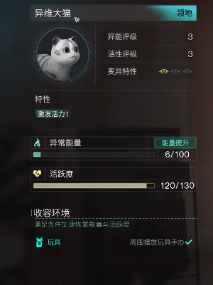 当异常能量大于30开始工作,在玩家入睡时,会陪伴玩家一同进入睡眠状态,并提供对应的生命回复。
