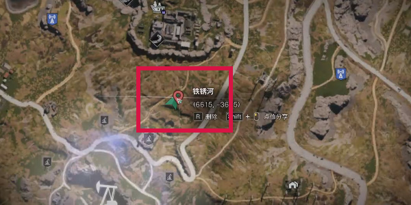 位置在铁锈河,坐标如图所示【6615,-3675】。