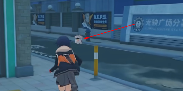 传送到光映广场步行区域,在右前方的栅栏后找到一只“一丁尼布”。