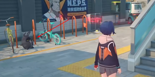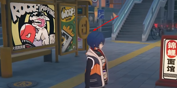 传送到拉面馆,在背后的公交站牌的另一侧可以找到一只“蜷缩的黑邦布”。