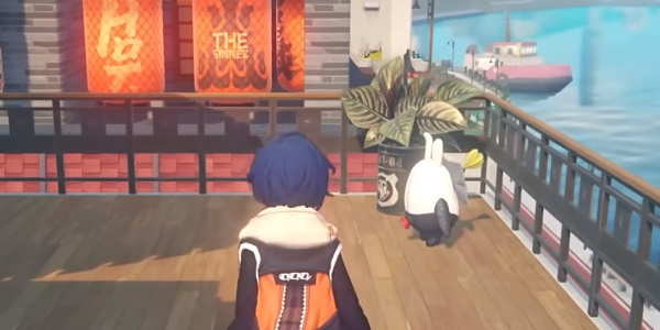 传送到咖啡厅,视角左转,登上大排档附近的平台,在平台上找到一只“科学家邦布”。