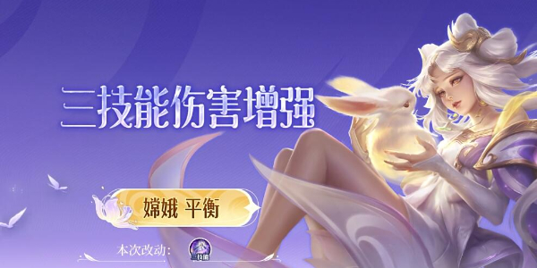本次调整将嫦娥的三技能伤害提升;改动技能:三技能。