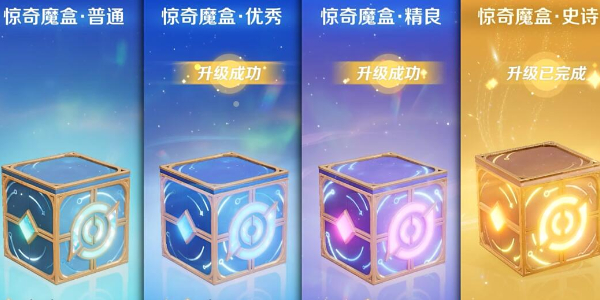 (2)魔盒可以进行升级,共有四种品质,品质越高的魔盒开出的奖励也会越好,更有机会直接开出皮肤奖励。
