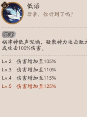 祸津神低声呢喃,凝聚神力攻击敌方目标,造成攻击100%伤害,无特殊效果。